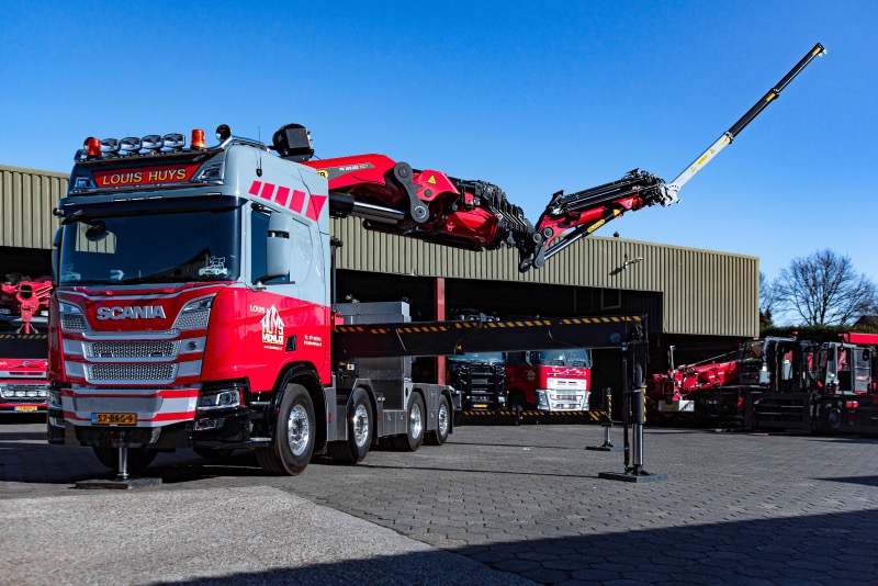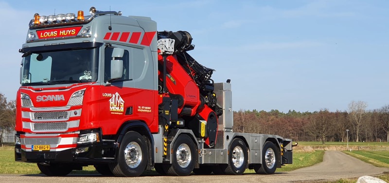 Een geweldige mooie opdracht van Louis Huys Speciaaltransport en Kraanverhuur B.V. uit Venlo- Blerick voor Terberg Techniek Baarlo, die in samenwerking met Palfinger Nederland op een Scania R 500 B8x2*6 heeft voorzien van een Palfinger PK 165.002 TEC7 autolaadkraan.